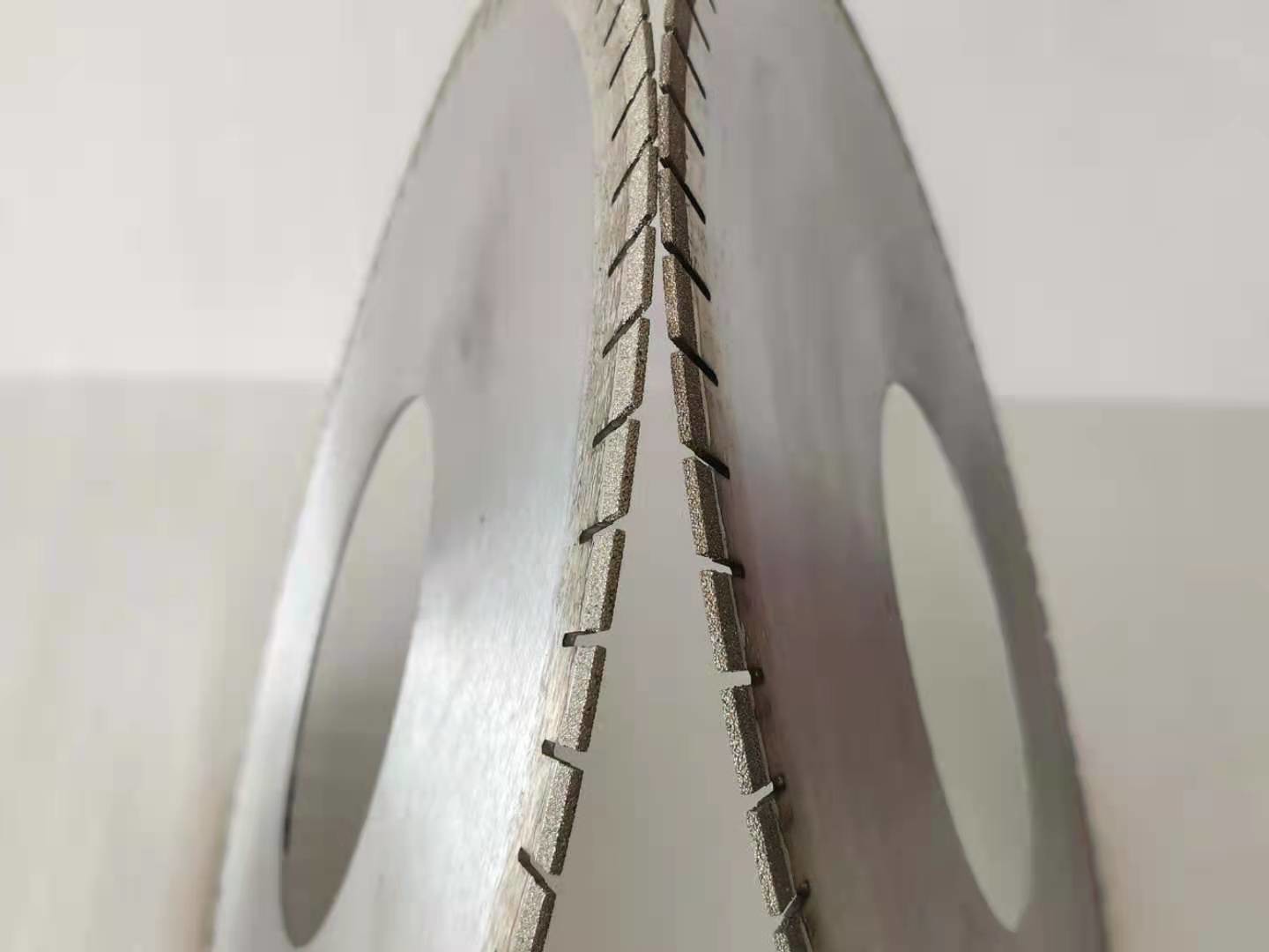 ダイヤモンドの刃は非常に限られた欠けることの速い切断の大理石の&graniteのために設計されている。次に区分は焼結する冷たい出版物および熱い出版物で抑圧されるそのプロセスは強い把握ダイヤモンドのための高密度の区分を与え、こうして刃によりよい性能および長い生命を与える。