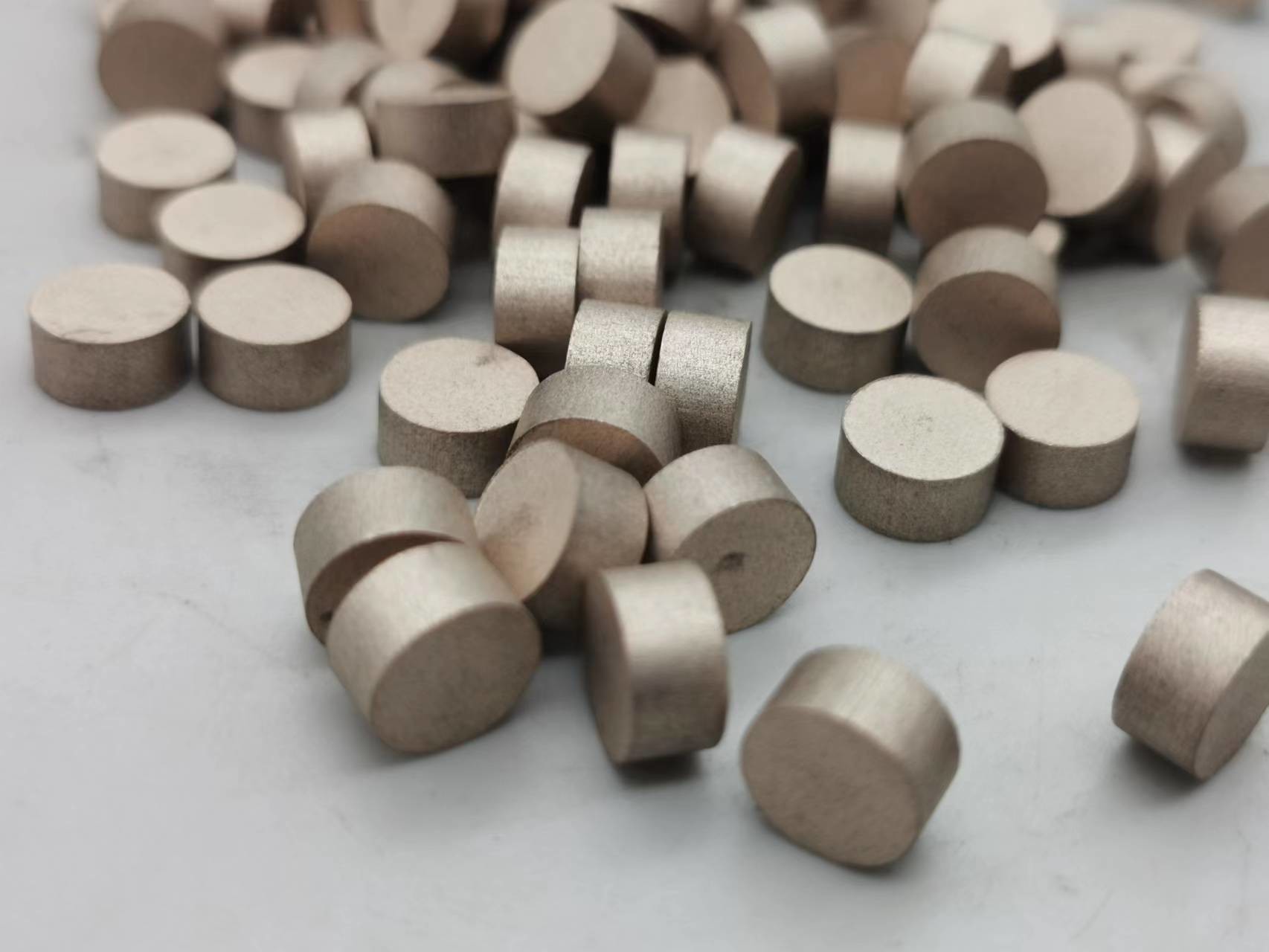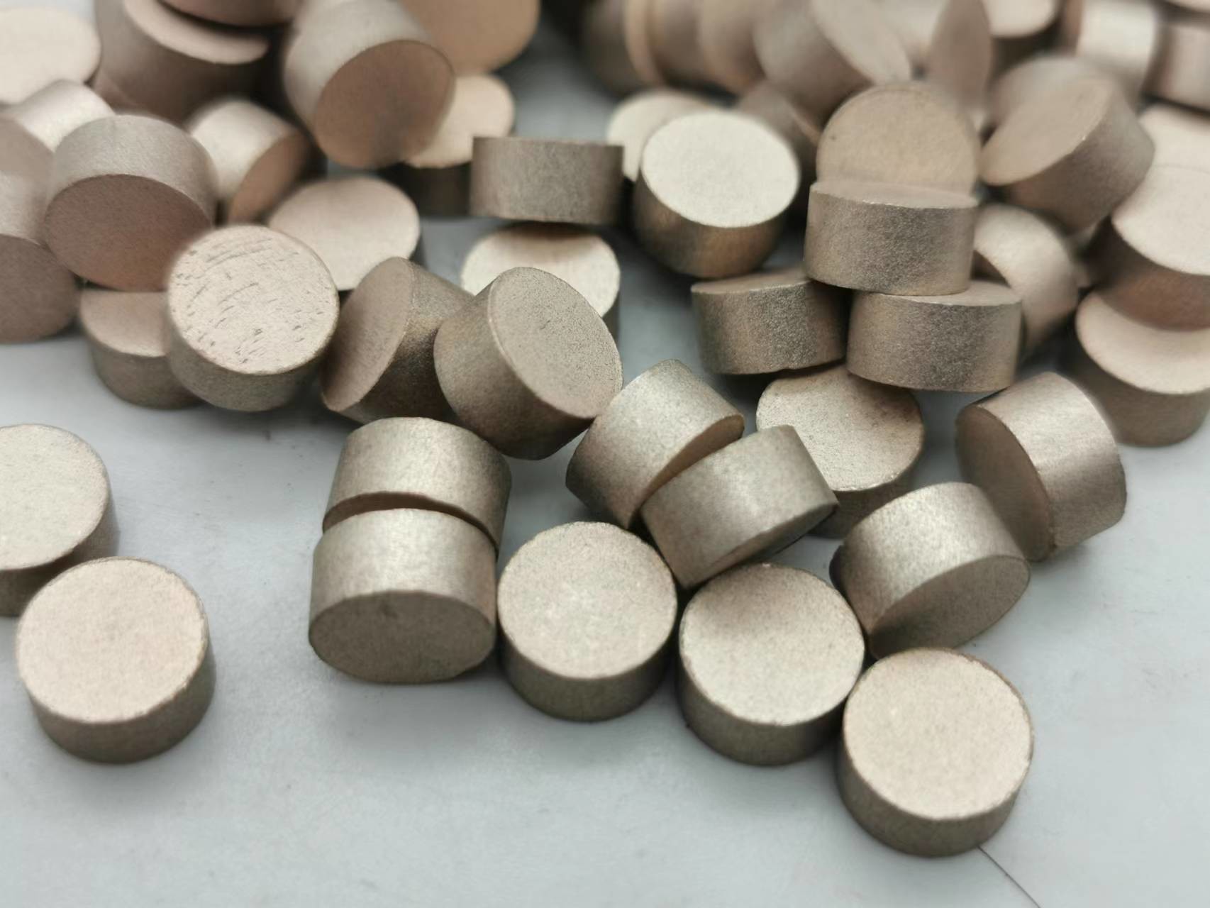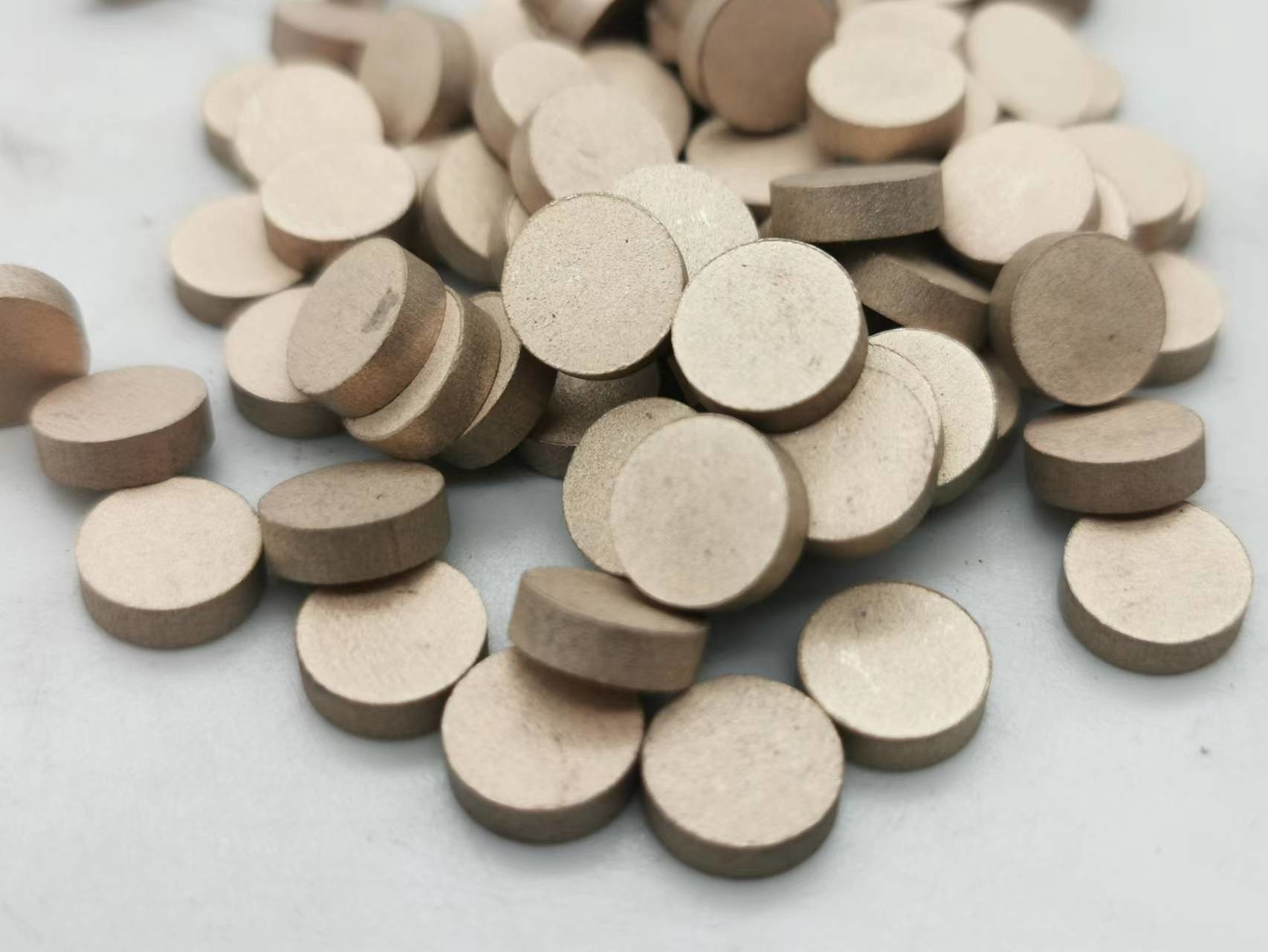 金属の結束のダイヤモンドの餌は光学glasssのために終わり粉砕プロセスで使用される。ダイヤモンドの餌の主関数は光学ガラスの要素にある特定の表面のサイズおよび機械化の差益があることを保障するために製粉プロセスによって残っている損なわれた層および粗雑面を取除くことである。次に金属の結束のダイヤモンドの餌はダイヤモンドの粉、金属粉およびフィルターを混合することと焼結する常温圧縮か、または高温圧縮によってなされる。