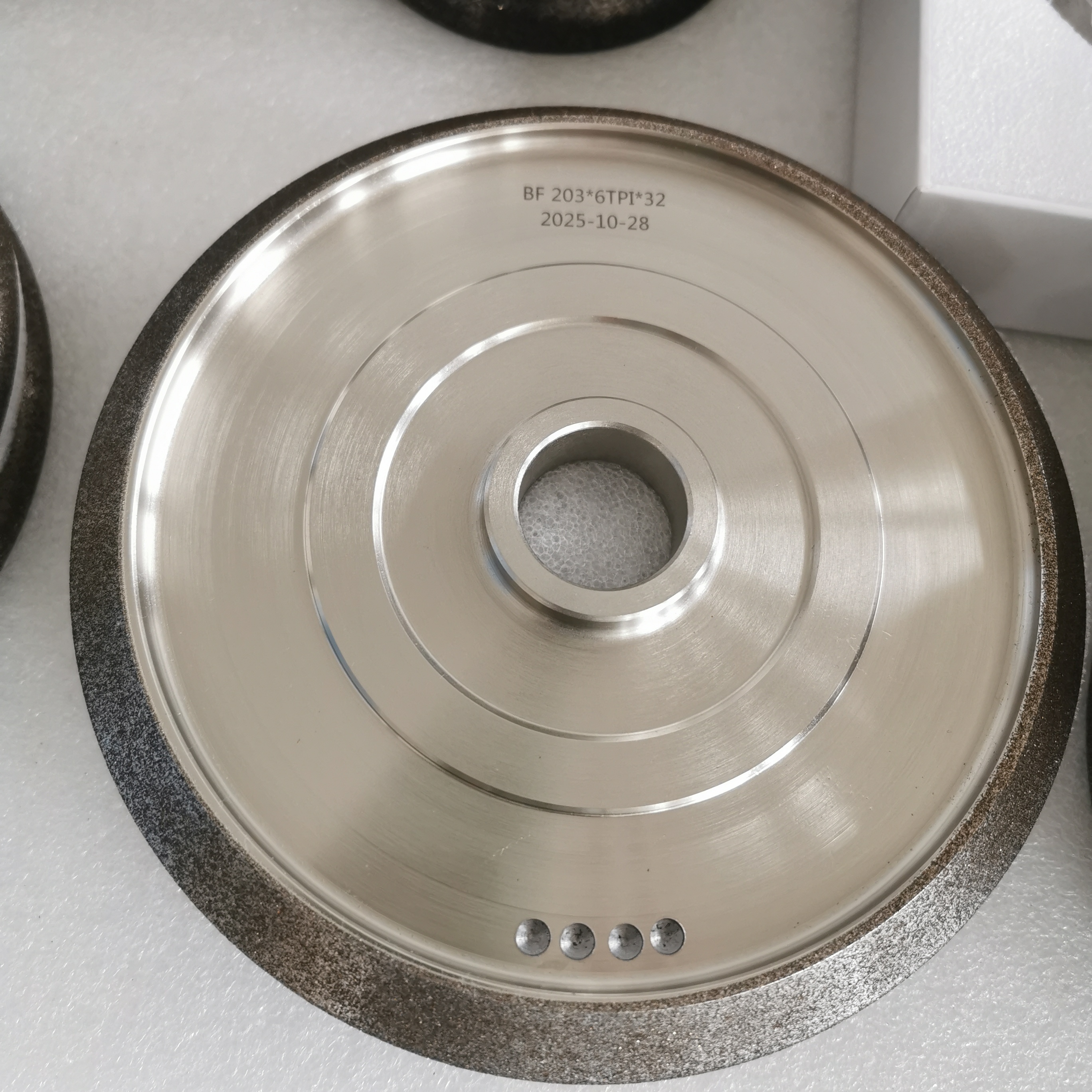 CBN: 硬さとしてはダイヤモンドに次ぐ立方ボロンナイトリッドは,鉄金属 (高速鋼などの) の加工用に特別に設計されています.電圧塗装:金属の電解 (通常はニッケルまたはニッケル合金) を通して,磨砂粒子を基板に"閉じ込める"製造プロセス本質的には,非常に強い切断能力を持つツールであり,金属基板に均等に分布したCBN磨砂粒は,従来の磨砂輪の性能をはるかに上回ります.