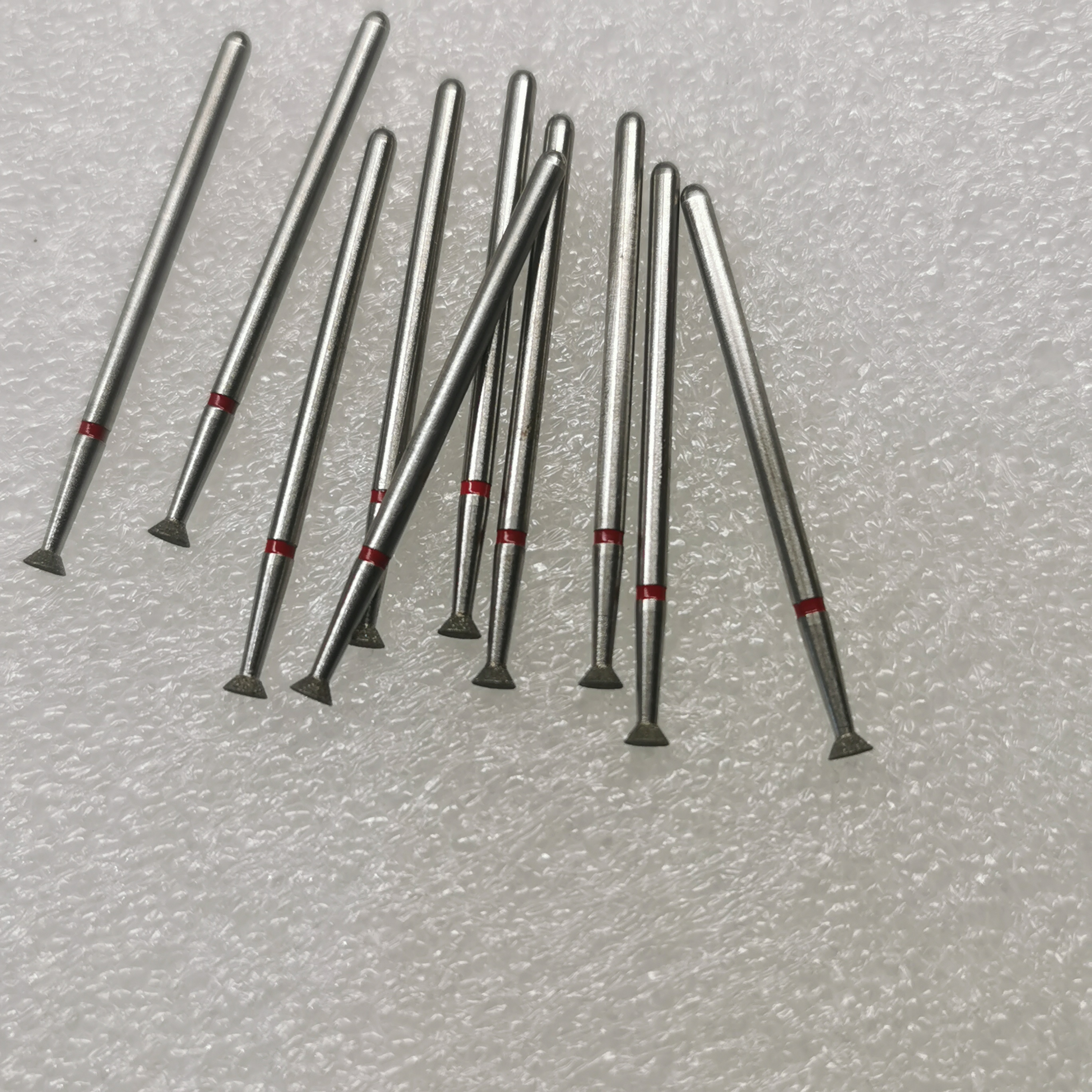 ダイヤモンドバーの基材は通常ステンレス鋼で作られています。支持および取り付け機能として機能し、その形状は要件に応じてカスタマイズされ、一般的に円筒形、円錐形、球形、および湾曲した形状が含まれます。結合層は主にニッケルまたはニッケル-コバルト合金です。電着によって成長し、ダイヤモンド粒子を機械的に埋め込み、固定します。研磨層はダイヤモンド粒子で構成されています。処理要件に応じて、異なる粒子サイズ、濃度、グレードが選択されます。